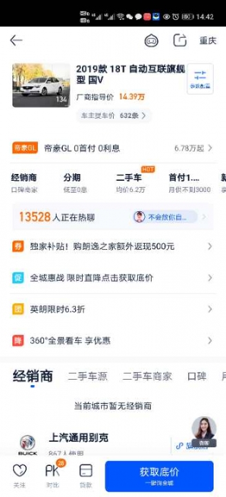 本人出售一款2019 18T 自动互联旗舰型 国V (1.3T 16...