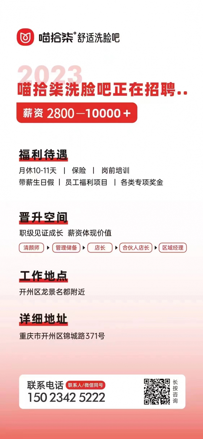 【开州招聘】喵拾柒洗脸吧