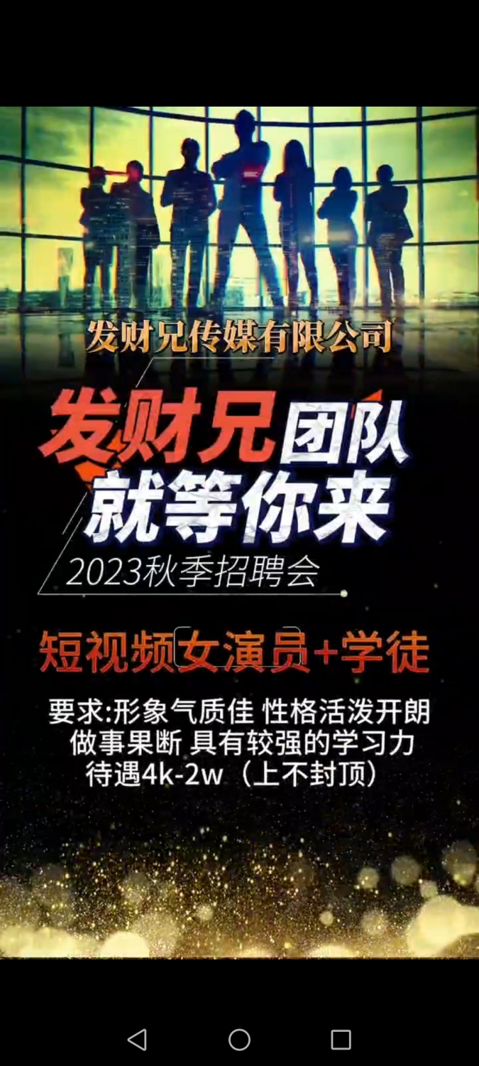 发财兄文化传媒公司急聘演员、主播、摄像师等